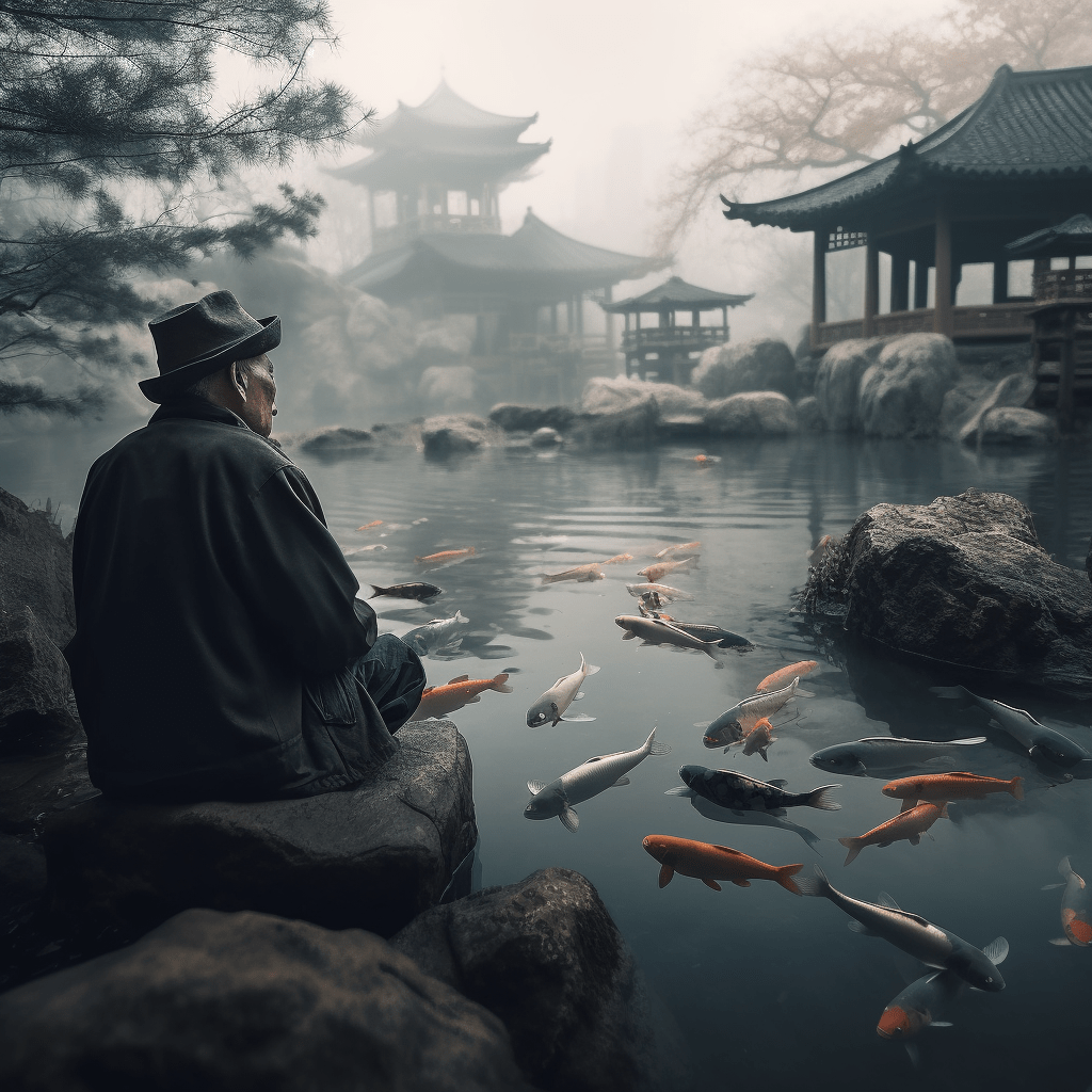 El monge Kogi era un famoso pintor que amaba los peces, tanto que compraba pescados solo para liberarlos y poder pintarlos en movimiento. Solía soñarse como pez hasta que un día cae en coma, su corazón deja de latir, y se convierte en pez por un tiempo. Cuando recobra vida les cuenta esta experiencia fantástica a sus conocidos y los hace reflexionar sobre el trato hacia los peces y la sobre pesca, así como a los lectores.