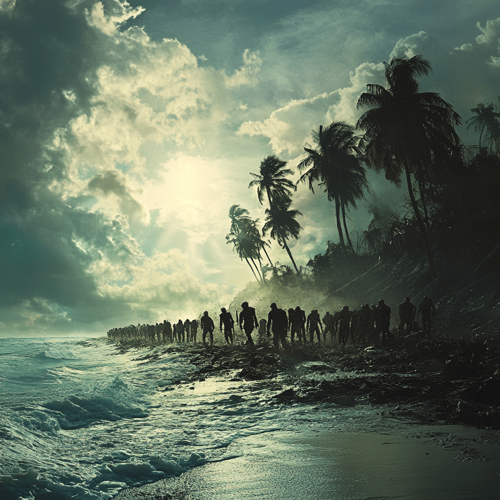 Va sobre un hombre horrible, el capitán Amiana, quien establece una isla donde esclavos de diversas nacionalidades son forzados a trabajar en condiciones inhumanas. A medida que la narrativa avanza, se evidencia la resistencia de los esclavos, quienes, tras años de sufrimiento, se levantan en un acto de venganza y liberación. La muerte y el deseo de libertad son temas centrales, y culmina cuando los muertos regresan, siendo éstos una manifestación del espíritu de resistencia que habita en los sobrevivientes.