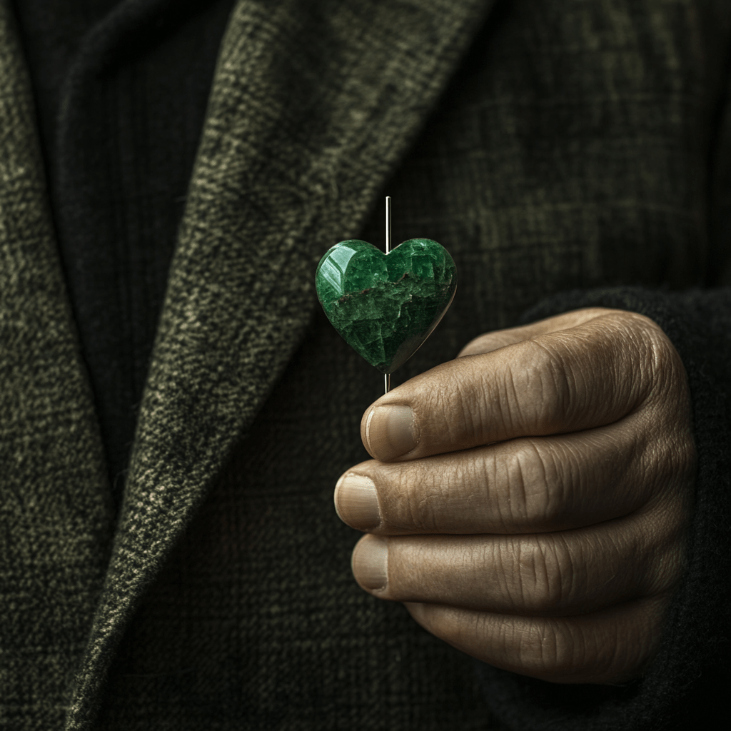 Vamos al mundo de los recuerdos y de la infancia de un pianista, conjurados por un alfiler de corbata, que antes fue una piedra verde en forma de corazón y luego prendedor, pequeñeces que funcionan como un relicario que guarda memorias. Hace pensar en la relación entre los objetos y las memorias que evocan, y aquí éstos ofrecen una forma de escape de la miseria y la desilusión presentes en la vida del protagonista.